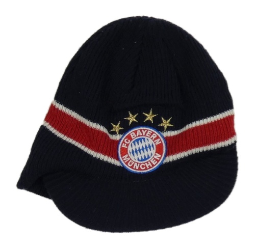 Tmavomodro-červená žebrovaná pletená fotbalová čepice FC BAYERN MÜNCHEN a pruhy a kšiltem