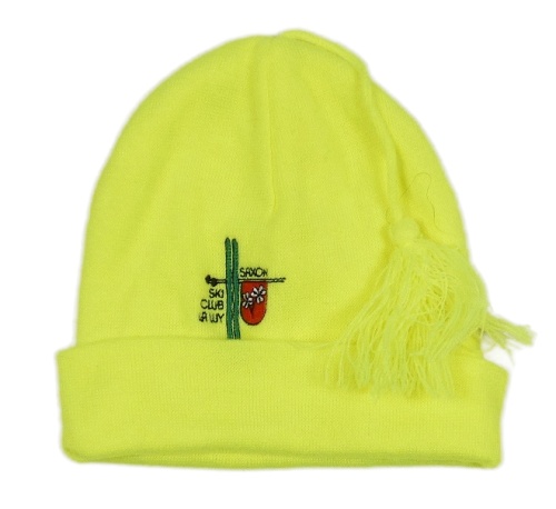 Neonově žlutá pletená čepice s výšivkou a bambulí