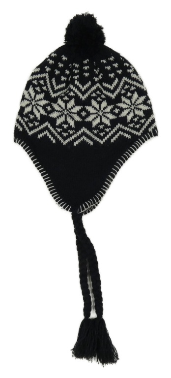Tmavomodro-bílá vzorovaná pletená podšitá ušanka