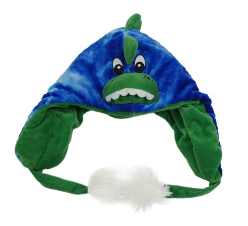 Kostým - Tmavomodro-zelená plyšová čepice - dinosaurus