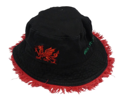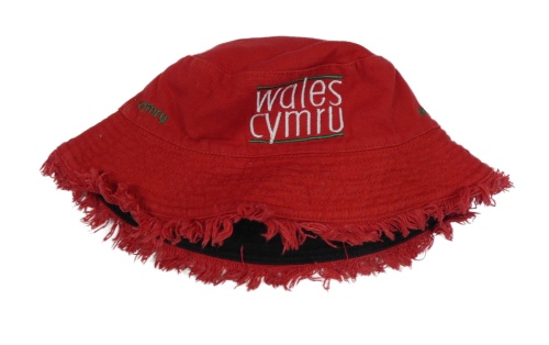Červený riflový oboustranný klobouk s nápisem