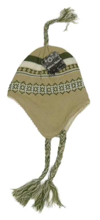 Nové - Béžovo-khaki-bílá čepice se vzorem a třásněmi