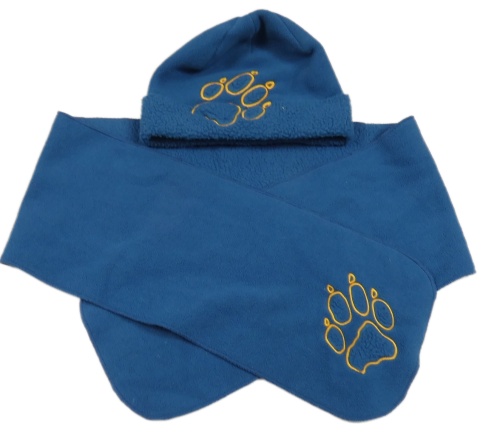 2set - Modrá fleecová čepice s tlapkou + šála