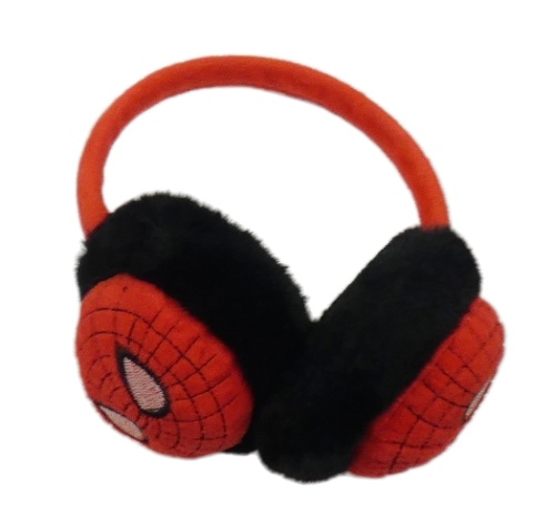 Červeno-černé plyšovo/chlupaté klapky na uši - Spiderman