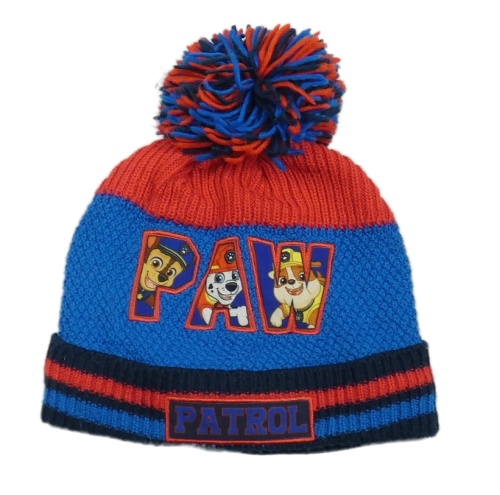 Tmavomodro-červená čepice s bambulí - Tlapková patrola