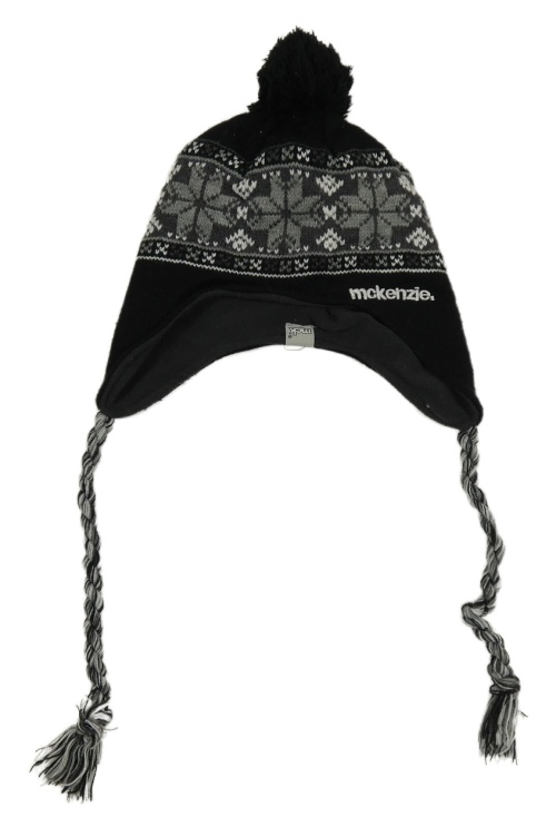 Černo-šedá pletená podšitá čepice s norským vzorem a bambulí McKenzie