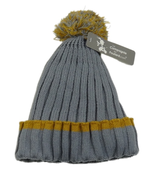 Nové - Šedá žebrovaná pletená čepice s bambulí