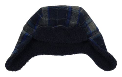 Tmavomodro-šedá kostkovaná vlněná zateplená beranice St. Bernard