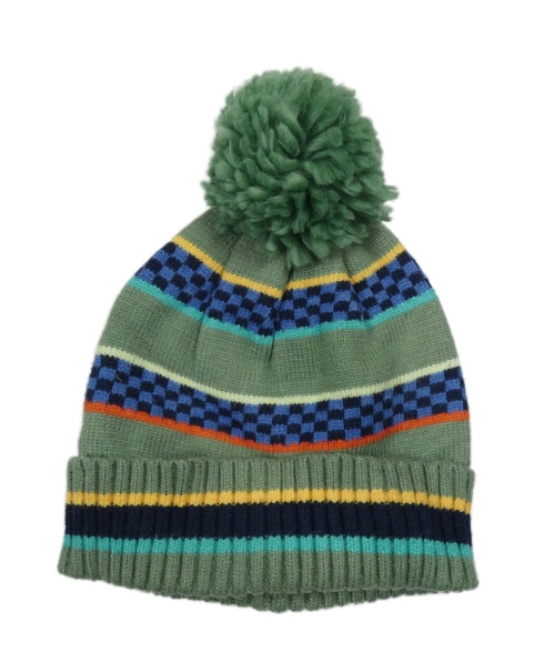 Zeleno-barevná pruhovaná čepice s bambulí M&S vel.116-140