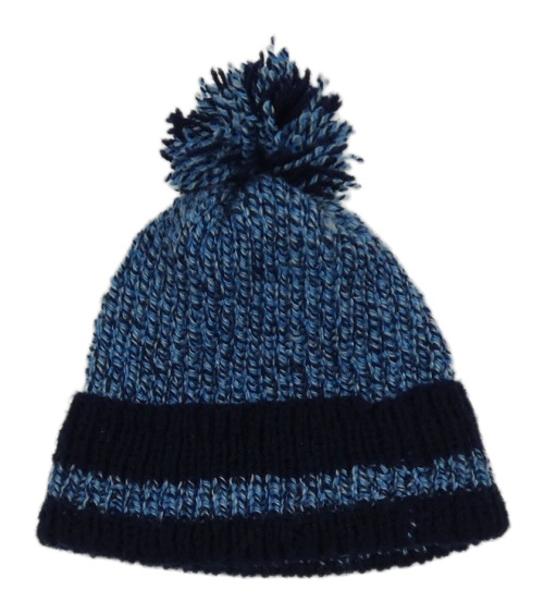 Modro-bílo-tmavomodrá melírovaná pletená čepice s bambulí