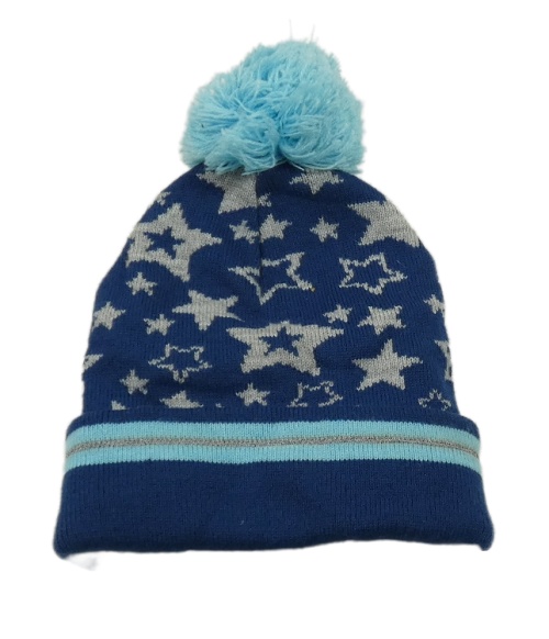 Tmavomodro-světlemodrá funkční pletená čepice s hvězdičkami a bambulí crane
