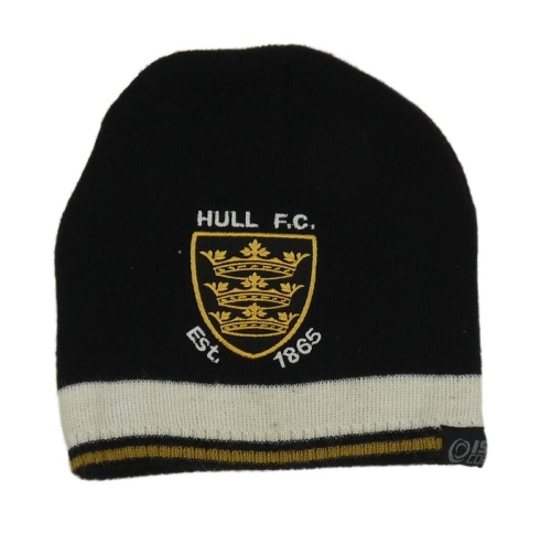 Černo-bílá pletená čepice se znakem