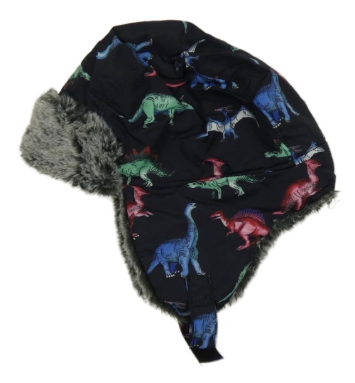 Černá šusťáková zateplená beranice s dinosaury a kožešinou C&A