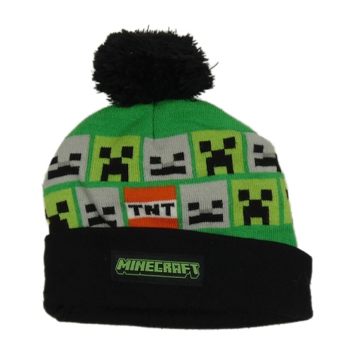 Zeleno-černá čepice s Minecraft a bambulí Primark