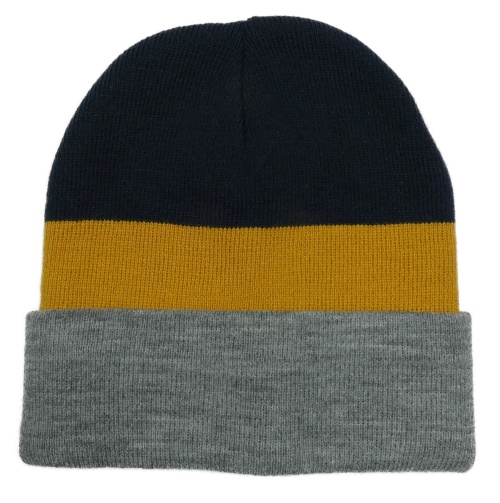 Tmavomodro-hořčicovo-šedá pletená čepice PUSBLU