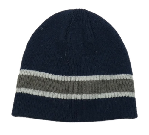 Tmavomodro/šedá vlněná čepice se světlešedými pruhy TCM