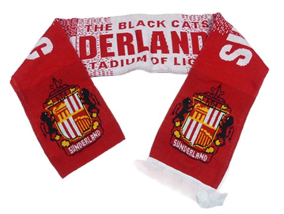 Červeno-bílá pletená hokejová šála s nápisem a erby
