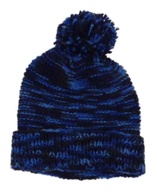 Tmavomodro-fialová melírovaná pletená čepice s bambulí