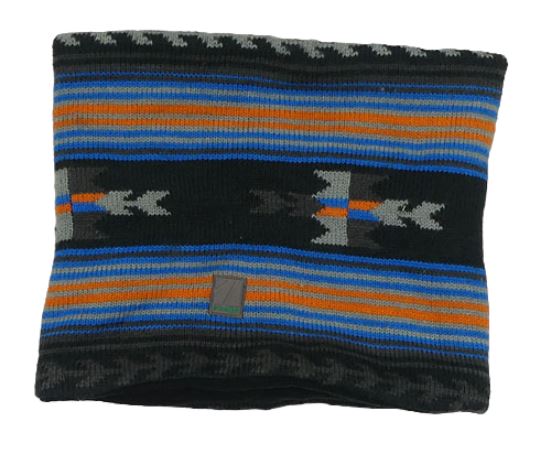 Černo-modro-oranžový pruhovaný nákrčník se vzorem