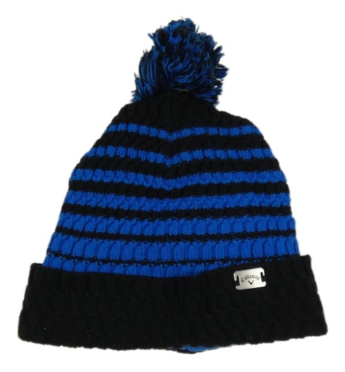 Černo-modrá pruhovaná pletená podšitá čepice s bambulí