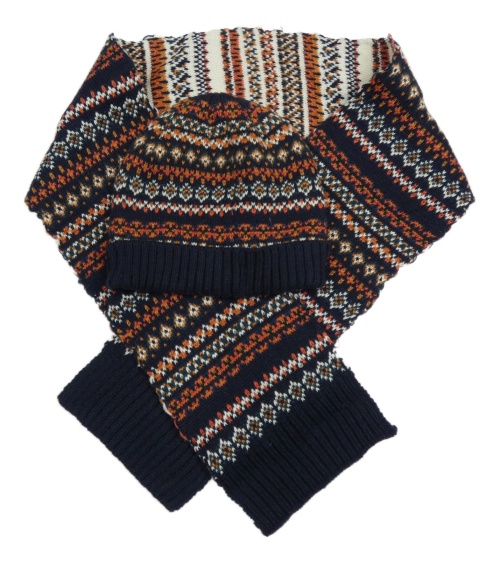 2set- tmavomodro-barevná vzorovaná čepice+ šála Matalan vel.128-158