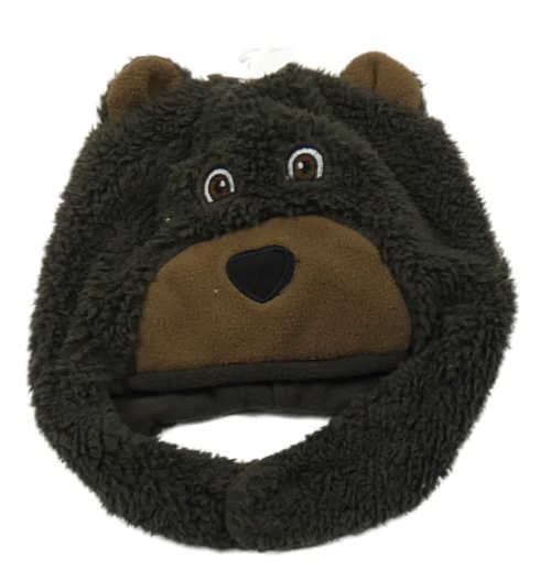 Nové - Kávová huňatá podšitá ušanka - medvěd