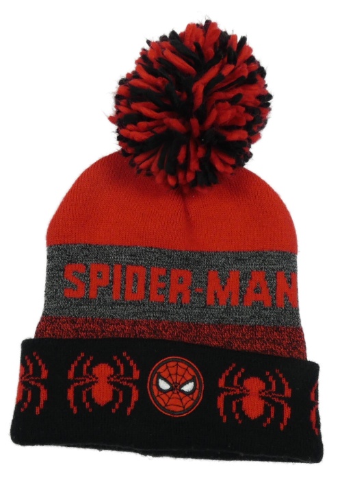 Červeno-čedo-černá čepice s bambulí - Spiderman