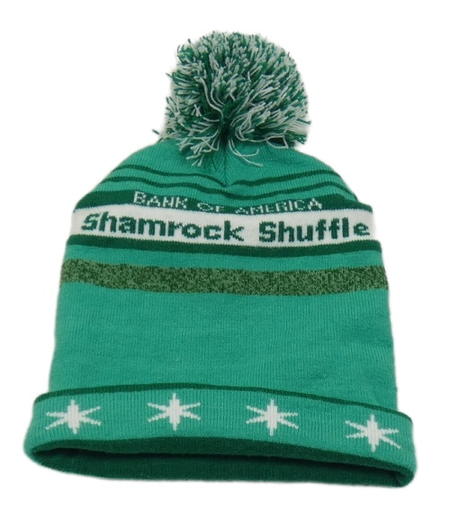 Zeleno-bílá vzorovaná pletená čepice s bambulí