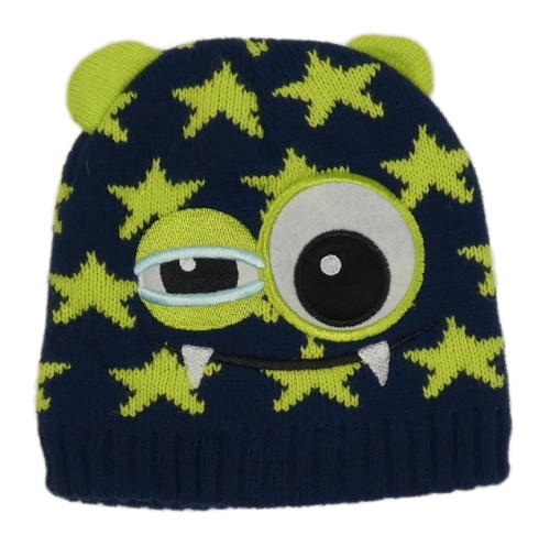 Tmavomodro-limetková hvězdičkovaná čepice s příšerkou