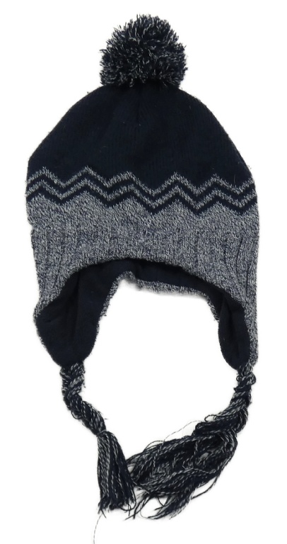 Šedo-bílá pletená podšitá ušanka s bambulí
