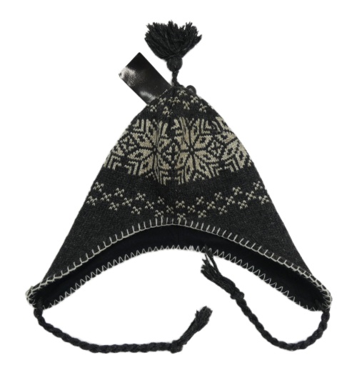 Nové - Tmavošedo-bílá vzorovaná čepice s třásněmi