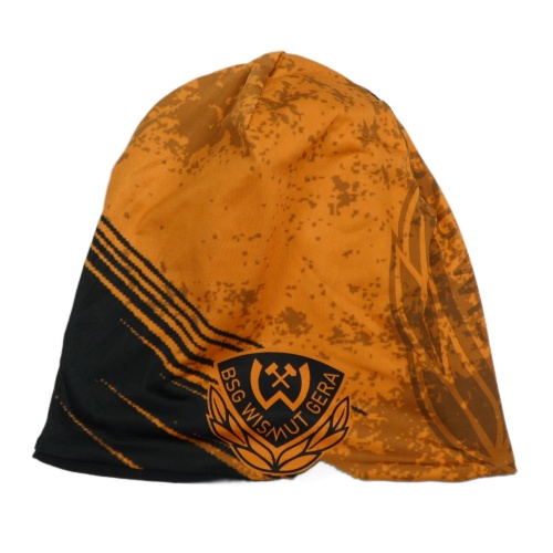 Oranžovo-černá vzorovaná čepice