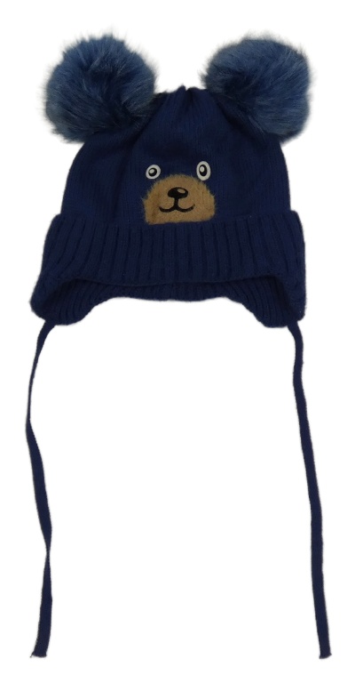 Tmavomodrá pletená podšitá ušanka s medvídkem