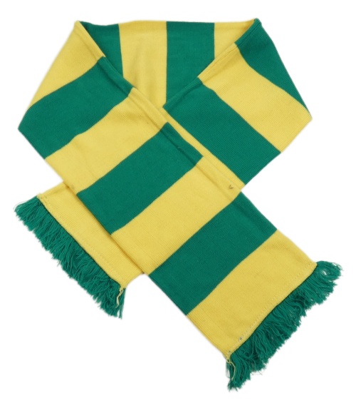 Zeleno-žlutá pruhovaná šála s třásněmi