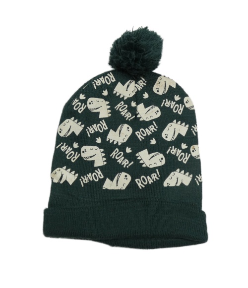 Khaki čepice s dinosaury a bambulí