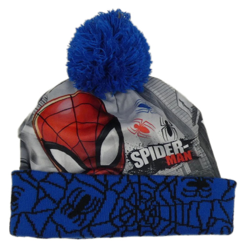 Šedo-safírová plyšovo/pletená čepice se Spider-manem a bambulí MARVEL