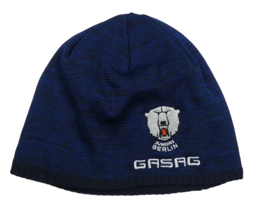 Safírovo-tmavomodrá melírovaná pletená čepice s medvědem