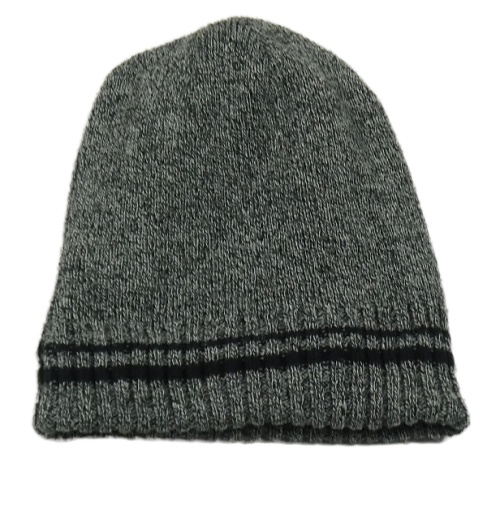 Šedo-černo-bílá melírovaná pletená čepice s pruhy