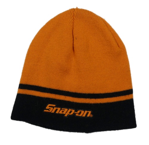 Oranžovo-černá čepice s pruhem a nápisem