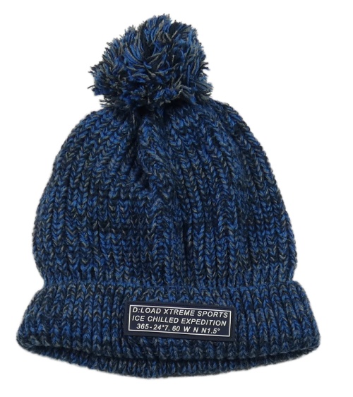 Modro-tmavomodro-šedá melírovaná čepice s nášivkou a bambulí C&A
