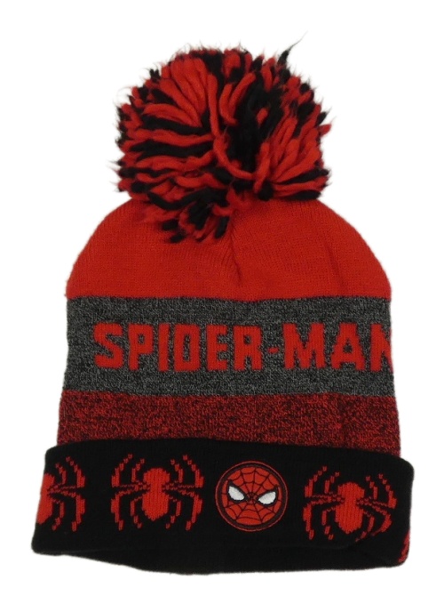 Červeno-tmavošedo-černá čepice se Spidermanem a bambulí Marvel