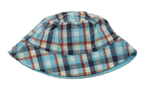 Modro-barevný kostkovaný plátěný podšitý klobouk