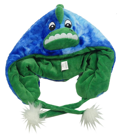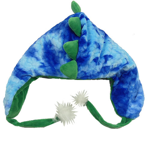 Modrá batikovaná chlupatá čepice - dinosaurus