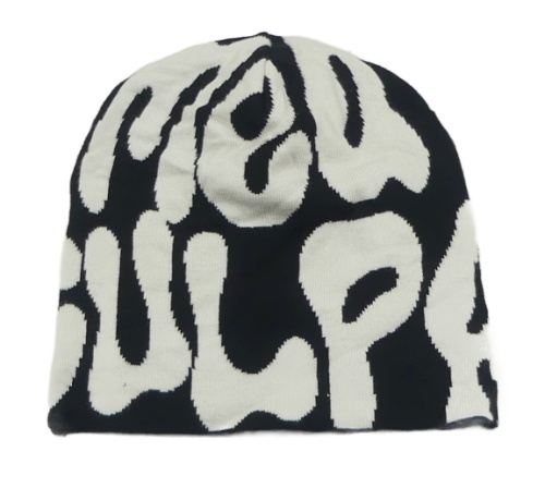 Černo-bílá čepice s nápisem