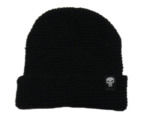 Černá žebrovaná pletená čepice s nášivkou