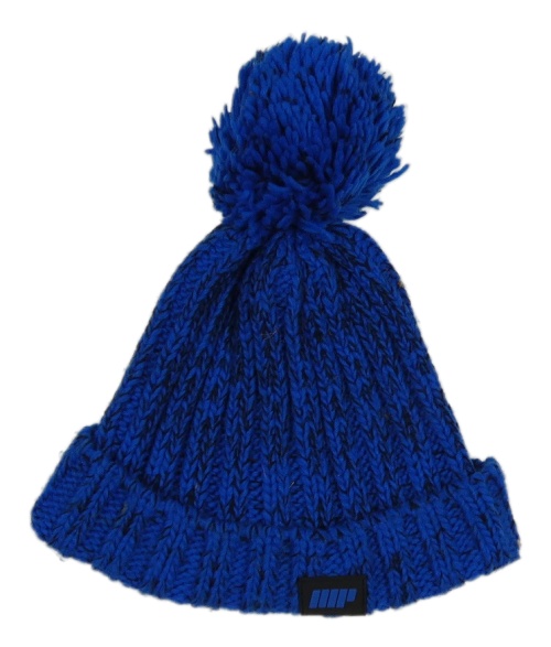 Modro-černá melírovaná pletená čepice s nášivkou a bambulí