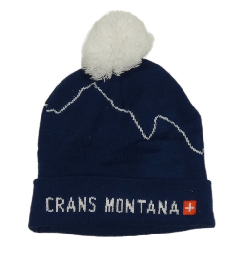 Tmavomodrá čepice s nápisem a bambulí