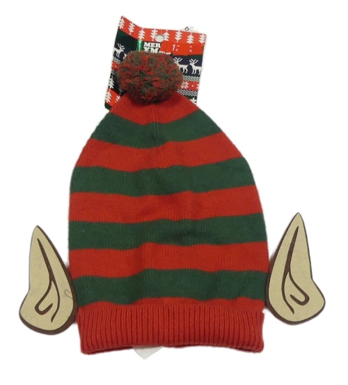 Nové - Červeno-zelená pruhovaná čepice s ušima - Elf