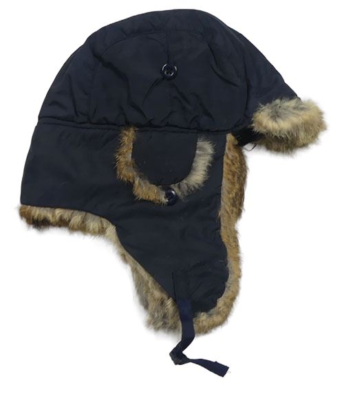 Tmavomodrá šusťáková zateplená beranice s kožešinou