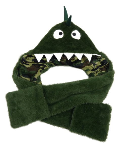 Tmavozelená kožešinová podšitá čepice se šálou - dinosaurus Matalan